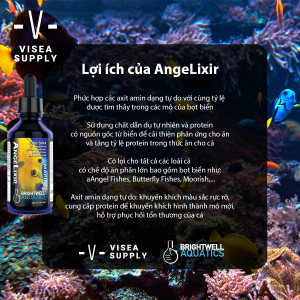 AngeLixir cải thiện phản ứng cho ăn và cung cấp các axit amin quan trọng trong tỷ lệ mô xốp, cũng như cung cấp protein biển để tăng nồng độ protein trong thức ăn (đặc biệt có lợi cho cá bị mất khối lượng cơ thể, tổn thương). AngeLixir là một phương tiện hiệu quả để cải thiện tính ngon miệng và dinh dưỡng của thức ăn, đồng thời tăng cơ hội chấp nhận thức ăn lạ của tất cả các loài cá.