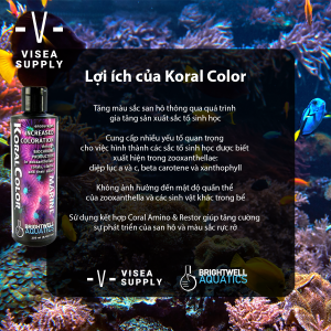 - KoralColor cùng với CoralAmino và Restor giúp tăng tốc độ phát triển và màu sắc của san hô.